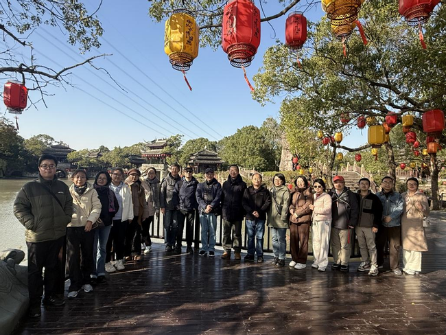 随后,大家前往韩湘水博园。这座以纪念唐代文学家韩愈侄孙韩湘子命名的古典园林,集江南园林艺术与水文化展示于一体。园内亭台楼阁错落有致,小桥流水曲径通幽,更有丰富的水利历史展陈。老师们在讲解员的带领下,细细品味古人的治水智慧,感悟“上善若水”的哲学意蕴。