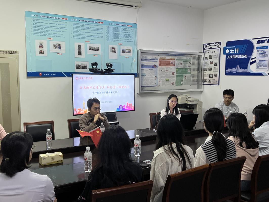 研学旅程的最后一站,大家来到了青浦区金云村村委会,和华东师范大学选调生校友鲁梦洁、复旦大学选调生周晓萌开展了一场朋辈交流会。两位学长分享了他们在平日里在基层的工作内容与生活细节,包括与村民们的沟通交流、体察民情、改善民生。随后,两位学长也围绕备考经验、驻村心得等进行深入探讨,为大家提供了自己的经验和建议,解答了大家对于选调生考试的诸多疑问。